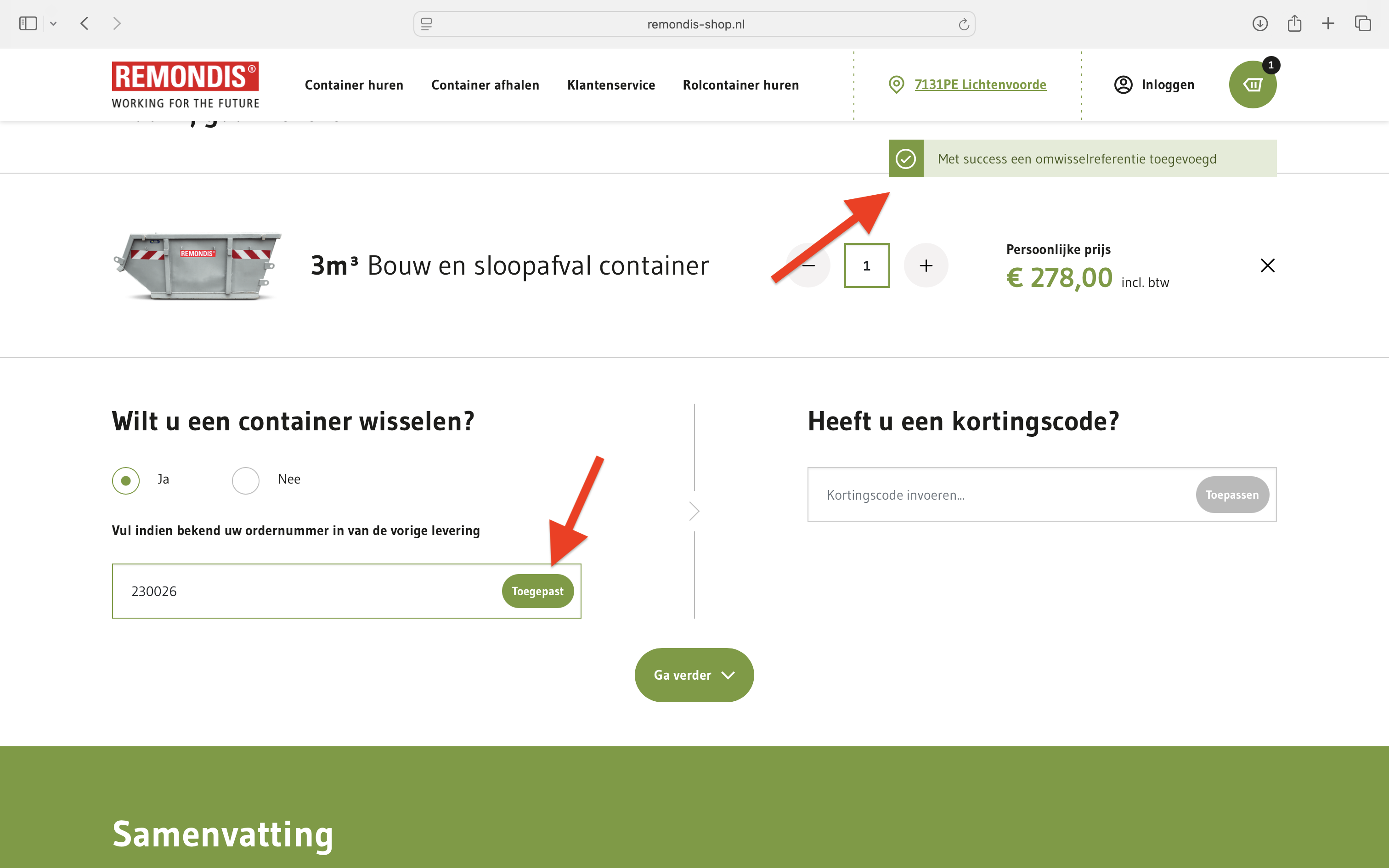 U kunt nu uw bestelling afronden zoals u gewend bent. Uw huidige container wordt dan omgeruild voor de nieuwe die u heeft besteld.