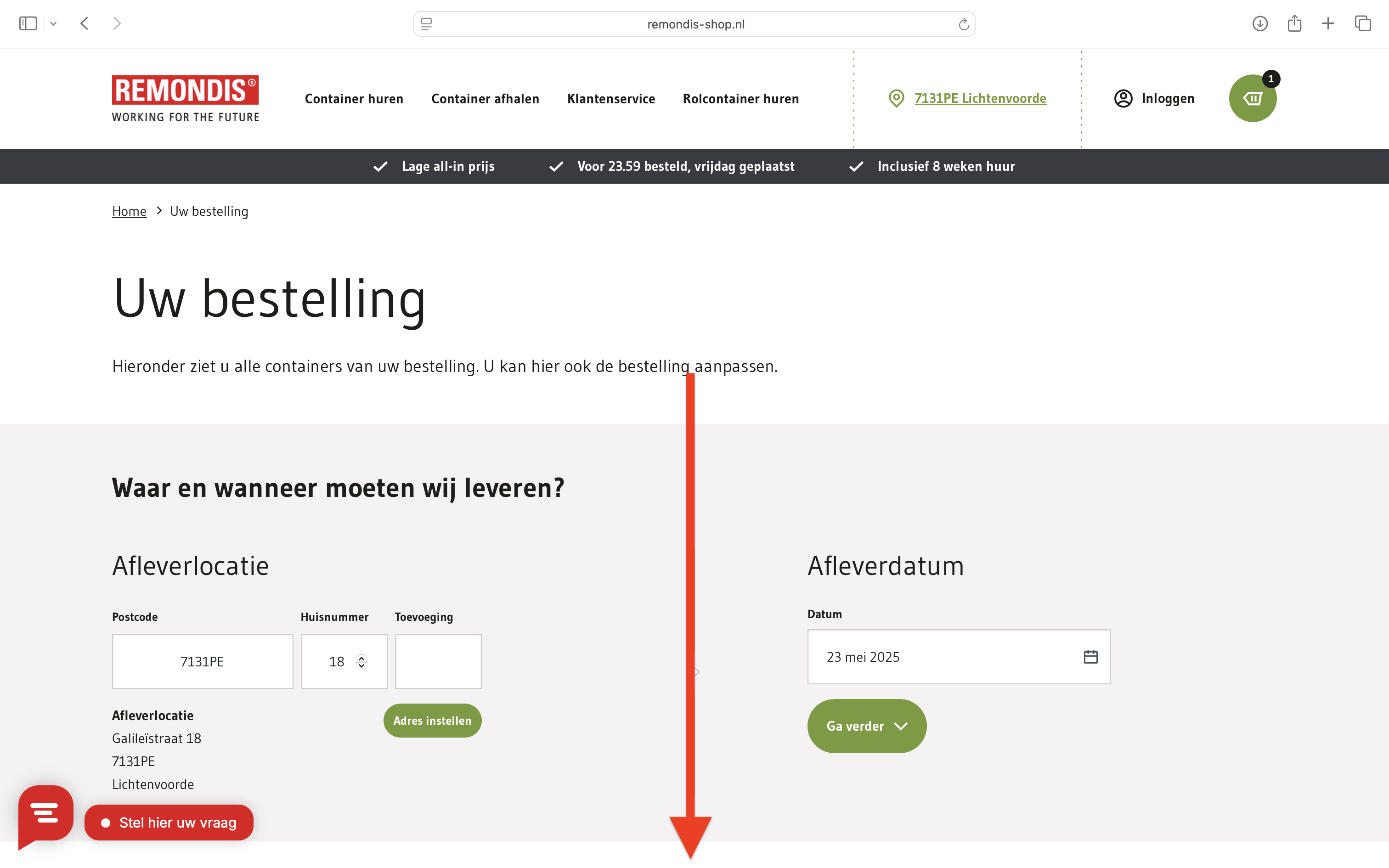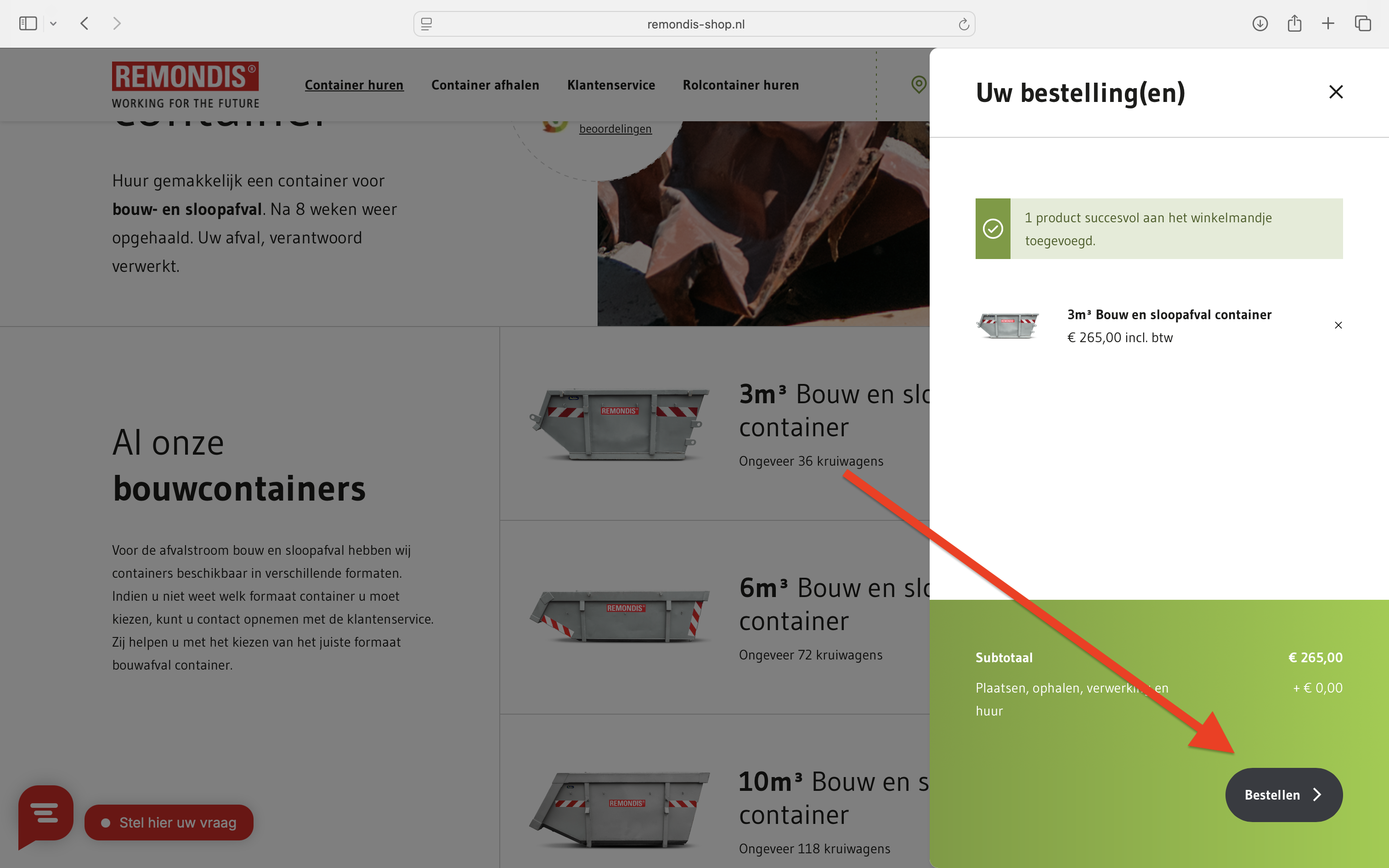Voeg de gewenste container toe aan uw winkelwagen en klik op "Bestellen".