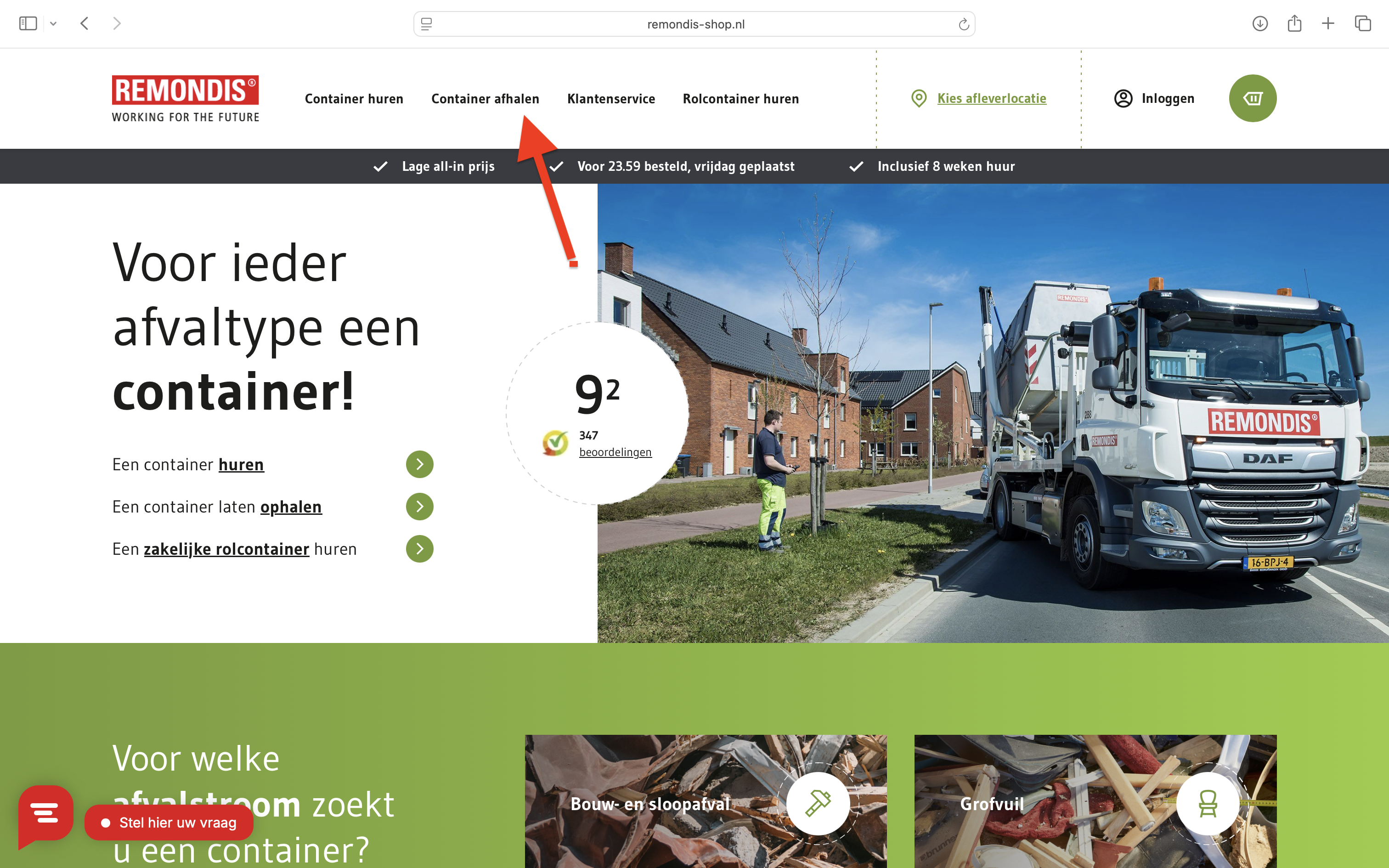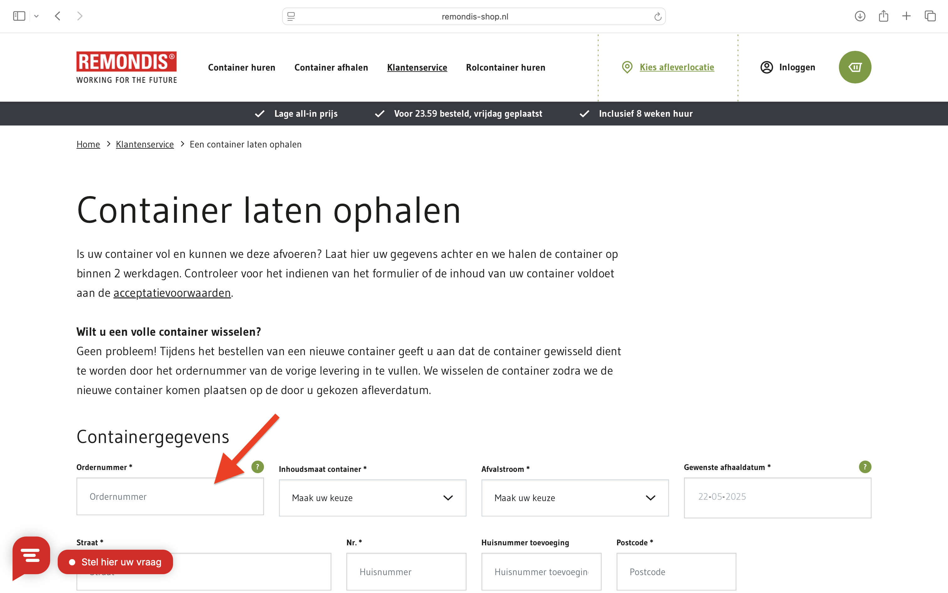Klik in het menu op "Container afhalen" of gebruik onderstaande knop: